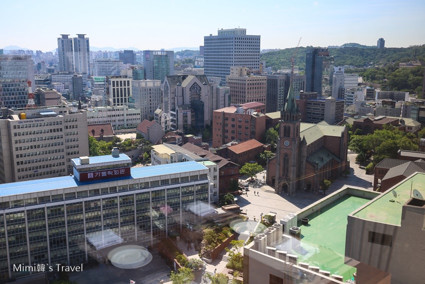 窗外就是酒店高樓層的View,對面就是明洞天主教堂,坐在這裡真的有種一覽眾山小的視覺感。