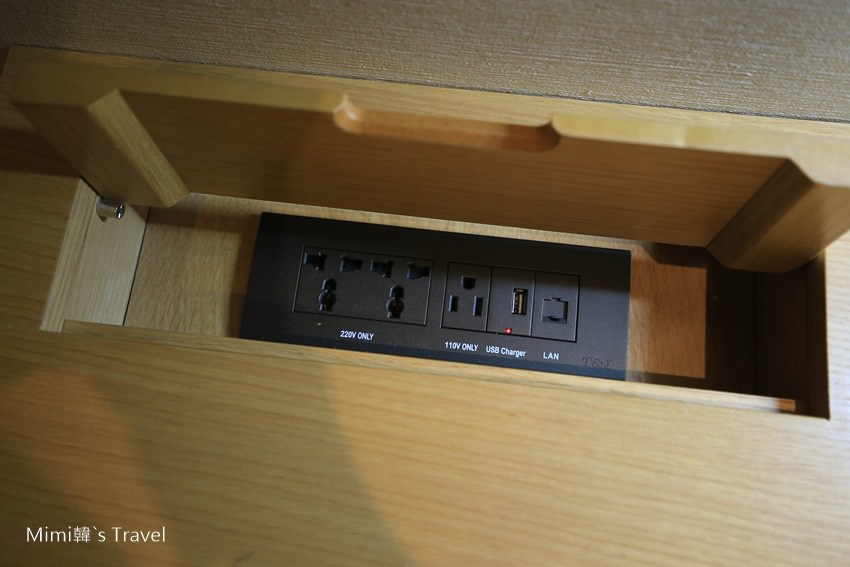 房間裡就有萬國插座,不用擔心沒有轉接頭,還有USB專用的插槽,如果和我們一樣3C用品很多的話,非常方便。