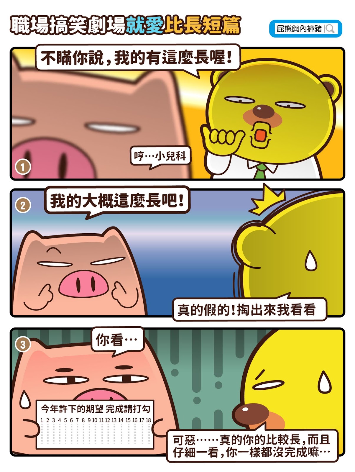 屁小熊 2019/08/21瀏覽: views 人聚在一起就愛比,尤其是男人就會比長短…所以我說屁熊跟內褲豬你們當眾在比誰哪裡比較長啊…難不成是…嗶嗶嗶… 屁熊內褲豬的最新古裝搞笑貼圖請點我↓↓↓ 好啦…如果是比這個…我應該也是蠻長的… 更多的職場搞笑劇場不要錯過囉! Related Items好有趣屁熊內褲豬職場甘苦 圖文觀點 2019/08/21瀏覽: views 屁小熊 愛分享上班搞笑的屁熊還有內褲豬,職場不開心的話就快來找我們 ■作者:屁小熊 ■主題:職場、漫畫、生活、搞笑 ■個人網站:https://padbear68ee07.blogspot.com/ ■FB粉絲團:https://www.facebook.com/ppbear123 ■連絡方式:197968ee07@gmail.com Related Items好有趣屁熊內褲豬職場甘苦 next page