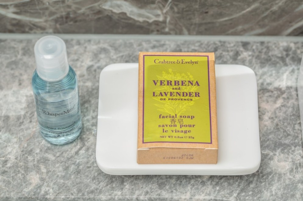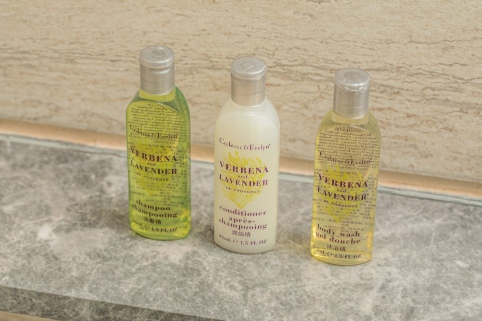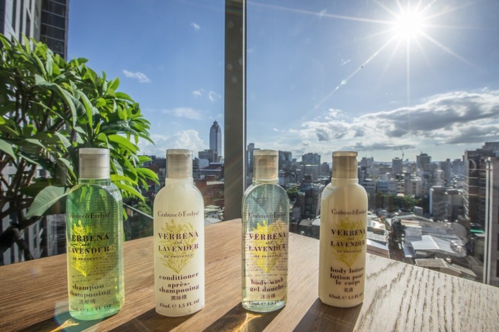 瑰柏翠品牌的備品,在這樣的光線底下顯得格外耀眼。