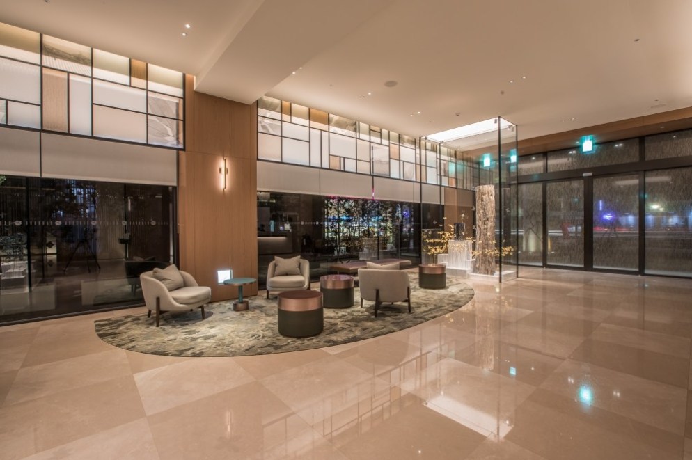 從門口來看,台北中山逸林酒店更像是一棟質感絕佳的豪宅,大型的Logo並不會給人一種壓迫感,而是一種高掛的靜謐感。