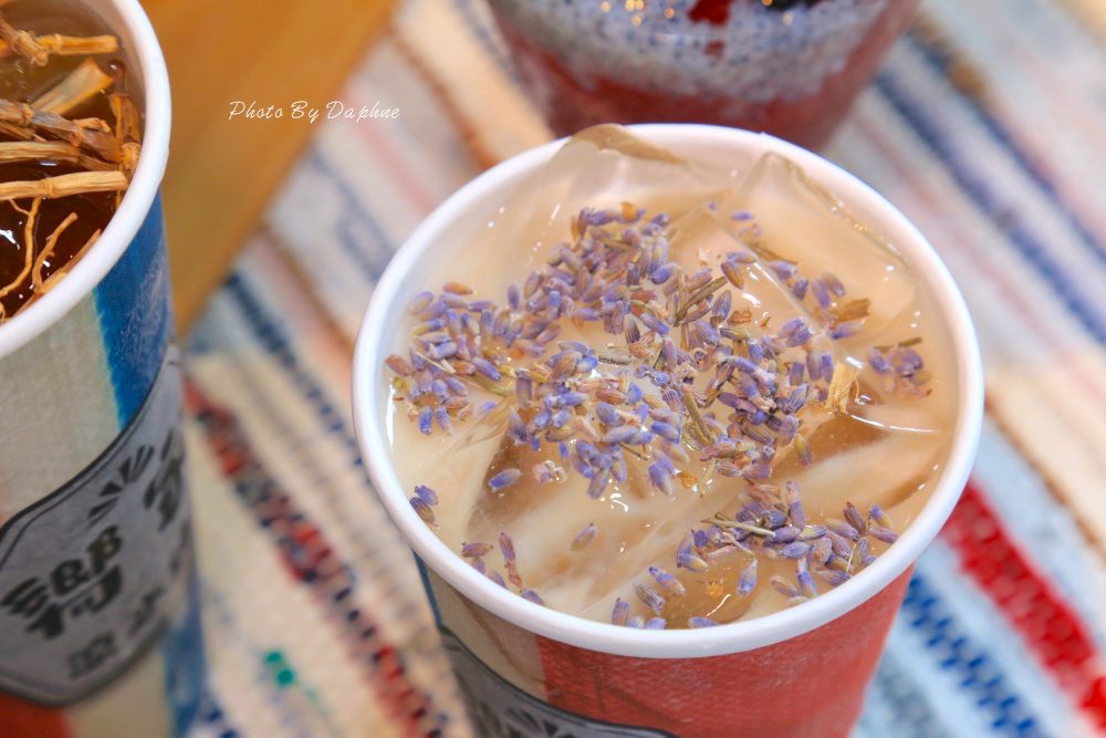 主原料有薰衣草、甘草、鮮奶,而鮮奶是使用網路上風評不錯的六甲田莊鮮乳。薰衣草沁人的芳香,淡而清雅打頭陣,中味轉為薄荷的冰涼感,清新得令人神清氣爽,最後以甘草收尾,舒心得香甜味驅趕壓力與煩躁,是上班族的減壓飲品。