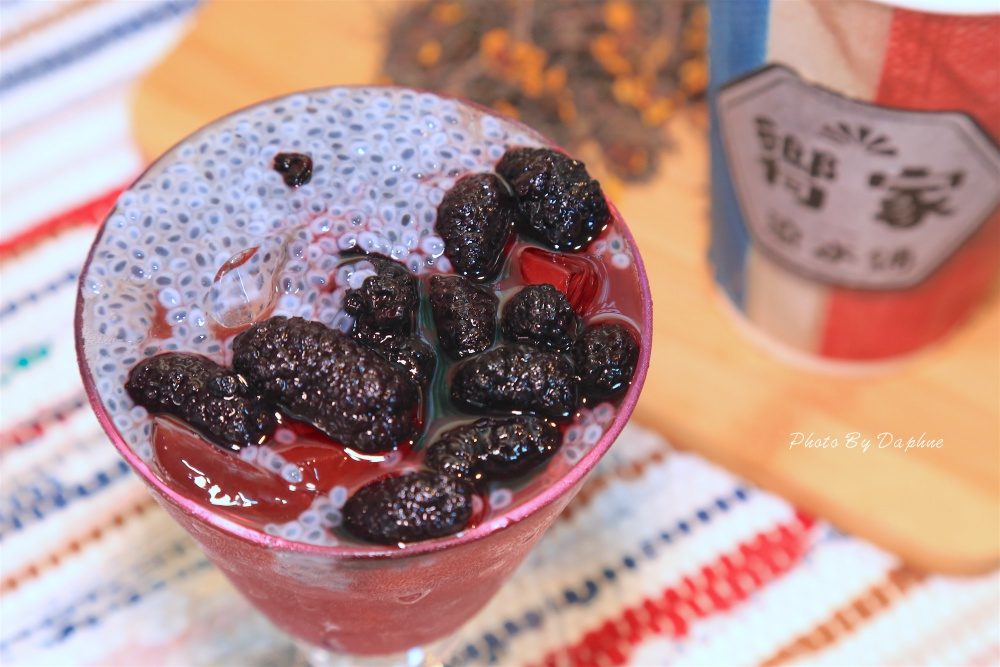 Daphne 當日心中第一名。主原料有用冰糖與蜂蜜釀製成的桑椹蜜,桑椹蜜是老闆走遍台灣,挑選台東產的桑椹蜜使用,其他有桑椹果、青茶、羅勒籽。