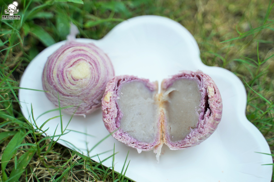 使用甲仙芋頭製作當內餡,使用法國無水奶油製作,搭配日本熊本珍珠薄力粉