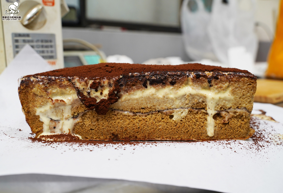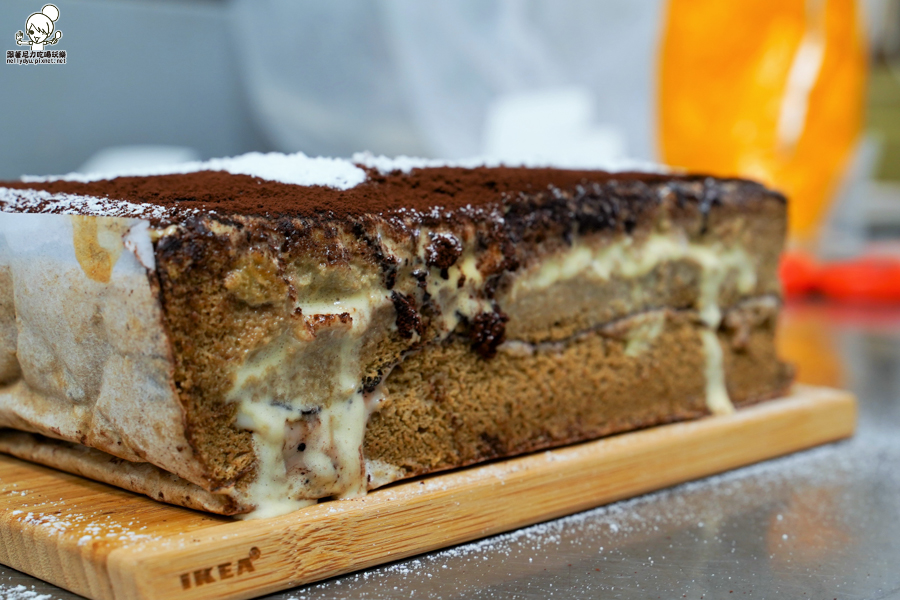 切開來會爆漿流竄的提拉米蘇蛋糕,帶有表面巧克力的苦甜香氣