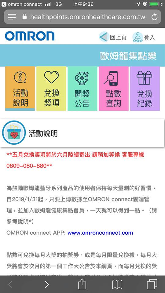 歐姆龍集點樂介紹網頁:https://connect.omronhealthcare.com.tw/