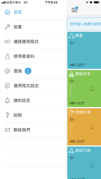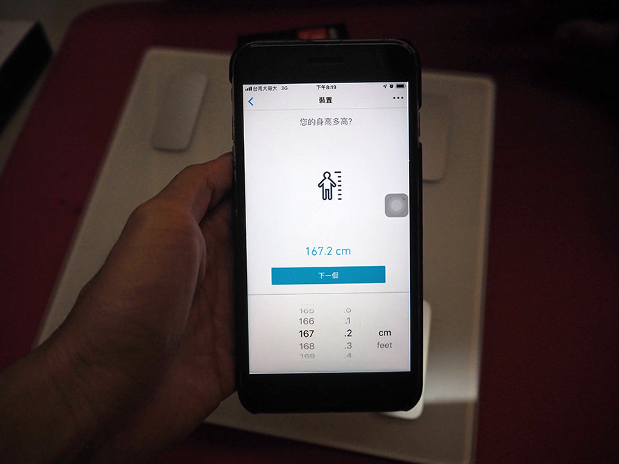 完全不需要按開機,站上去就會自動辨別有設定過的人,馬上測量、辨別,透過藍牙上傳數值