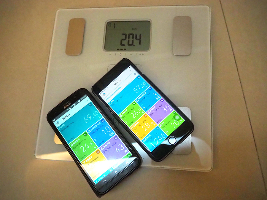 左邊是 OMRON歐姆龍藍牙體脂計HBF-222T,右邊是我舊款的