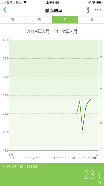 用OMRON connect 記錄每日的體組成數據,會自動幫你生成趨勢圖,不僅可以掌握自己的體態狀況