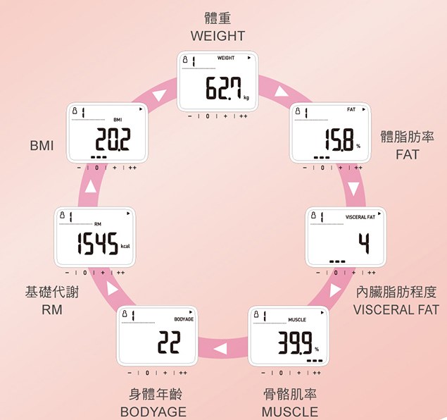利用每天的數據變化,更能輕鬆掌控健康及體態變化,還有量出女孩子最在乎的身體年齡