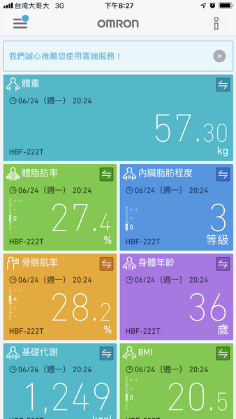 每天一定會量體脂,有時看到體脂飆高就會馬上控制飲食、搭配運動