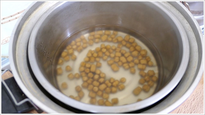 待珍珠外皮熟透後,轉放入電鍋中悶煮30分鐘即可