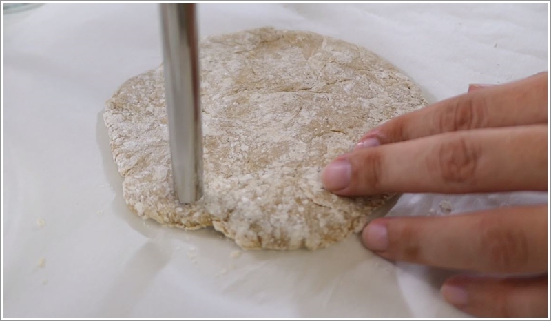 4.使用珍珠奶茶的粗吸管將麵團壓出一個一個的圓形小麵糰後搓圓。