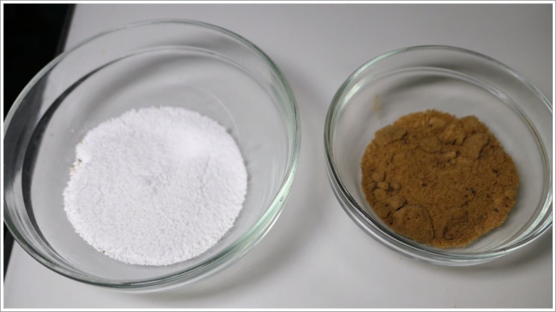 ▼太白粉或番薯粉100g及黑糖粉35g先準備好!