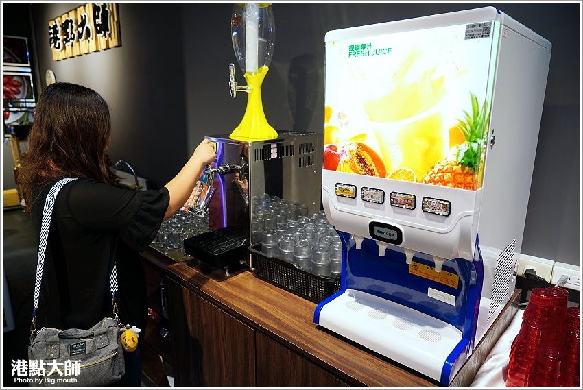 ▼一旁還有各種果汁飲品、啤酒機,想喝什麼自己裝!(未滿十八歲請勿飲酒)