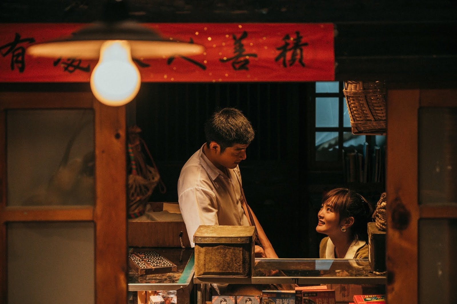 阿公年輕時曾經與初戀情人私奔,但妻子意外早產,必須送至大醫院治療,為了讓心愛的人活命,阿公只能忍痛把妻子送回娘家。岳父深愛女兒,但卻容不下女兒那門不當戶不對的愛情。阿公一個人開設柑仔店,每晚店門口不熄滅的燈光,或許正象徵對年輕時那不得不低頭的愛情,存著無限惆悵與思念。