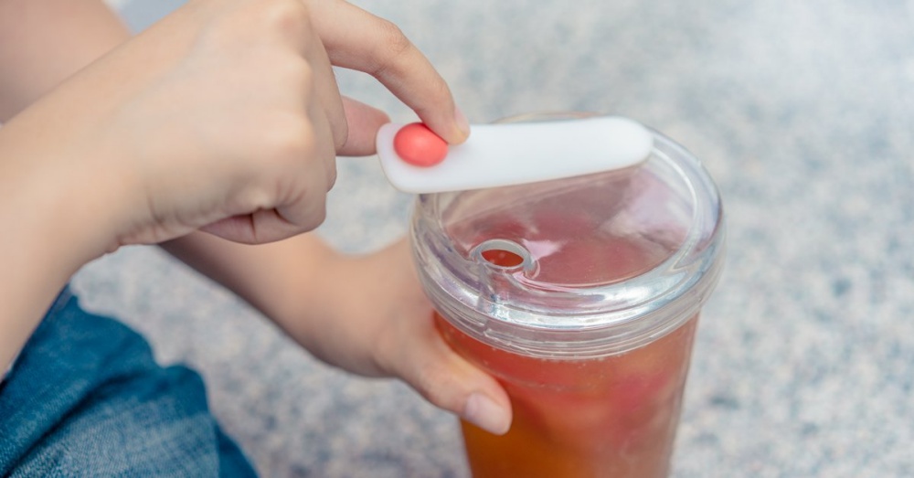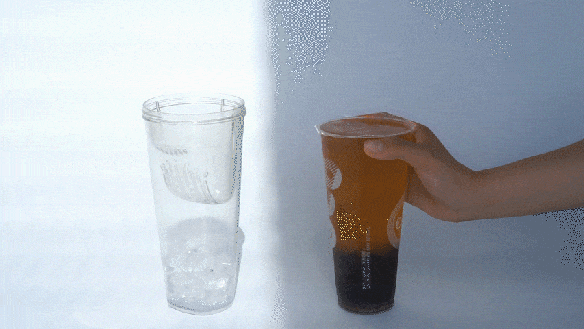 將飲品與珍珠倒入杯子後,珍珠會落在上方的濾杯,飲用時,就能先吃到珍珠,同時也能喝到飲料。