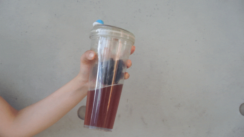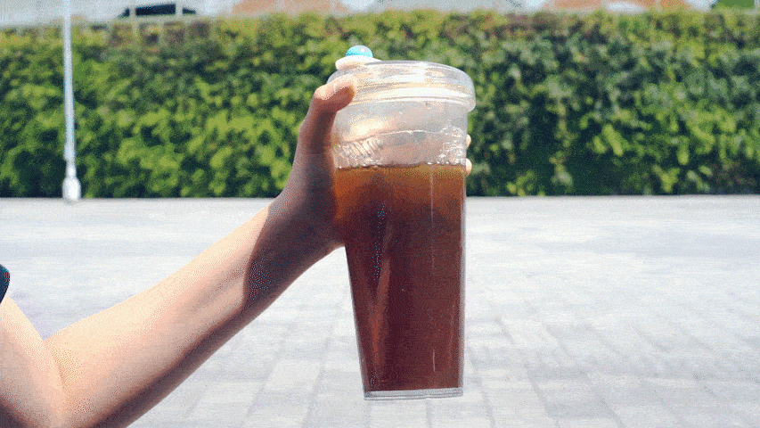 當配料放置太久黏在一起怎麼辦?經過實測,即使配料離開液體放置一個小時,輕搖3-5下,即可將配料完全搖開。不過很少人買了手搖飲會放這麼久吧?