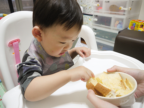 平常就很愛吃吐司了,看到吐司馬上伸手過去抓。