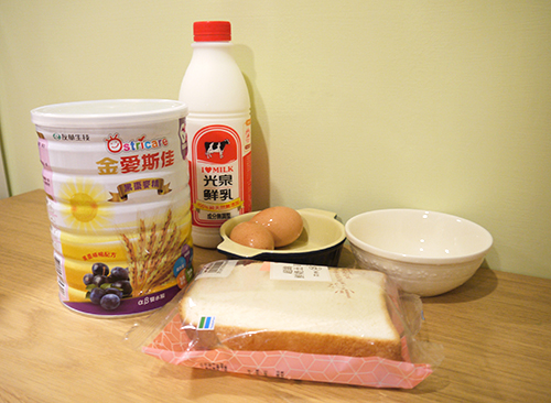 材料有:金愛斯佳黑棗麥精、雞蛋、牛奶、吐司、少許冰糖(一歲前寶寶不可食用蜂蜜喔!)、少許鹽巴