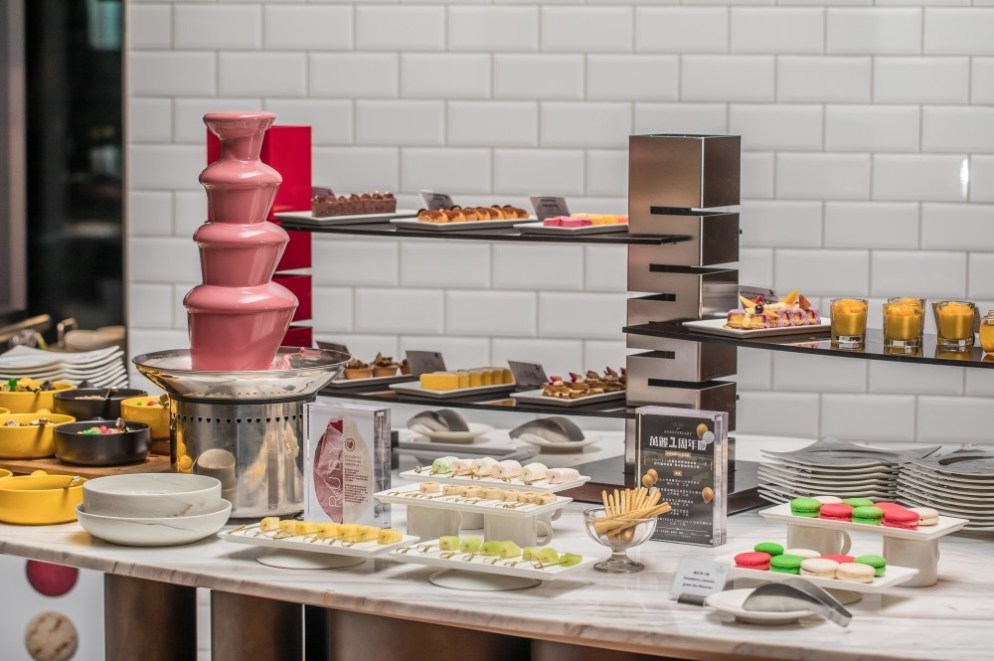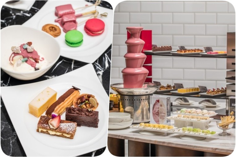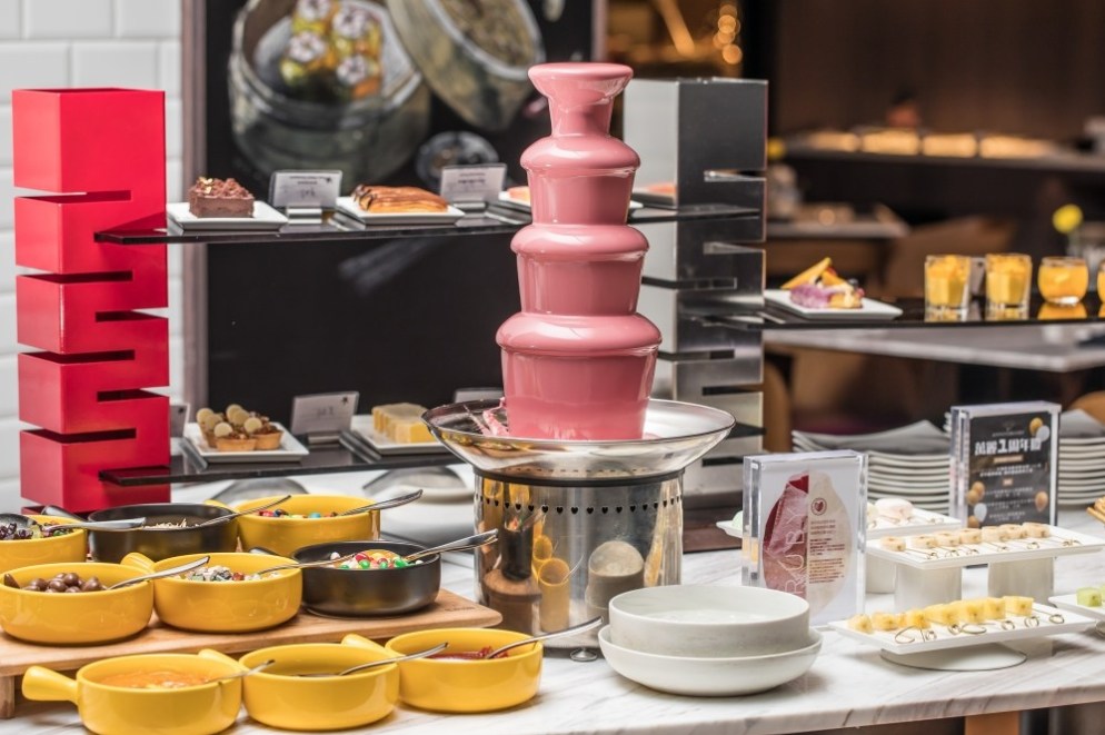 再來就是粉紅色巧克力噴泉與各式各樣的甜點,每一種都不能錯過。(對,就是每一種,如果你是甜點愛好者就會發現真的很有單點水準)
