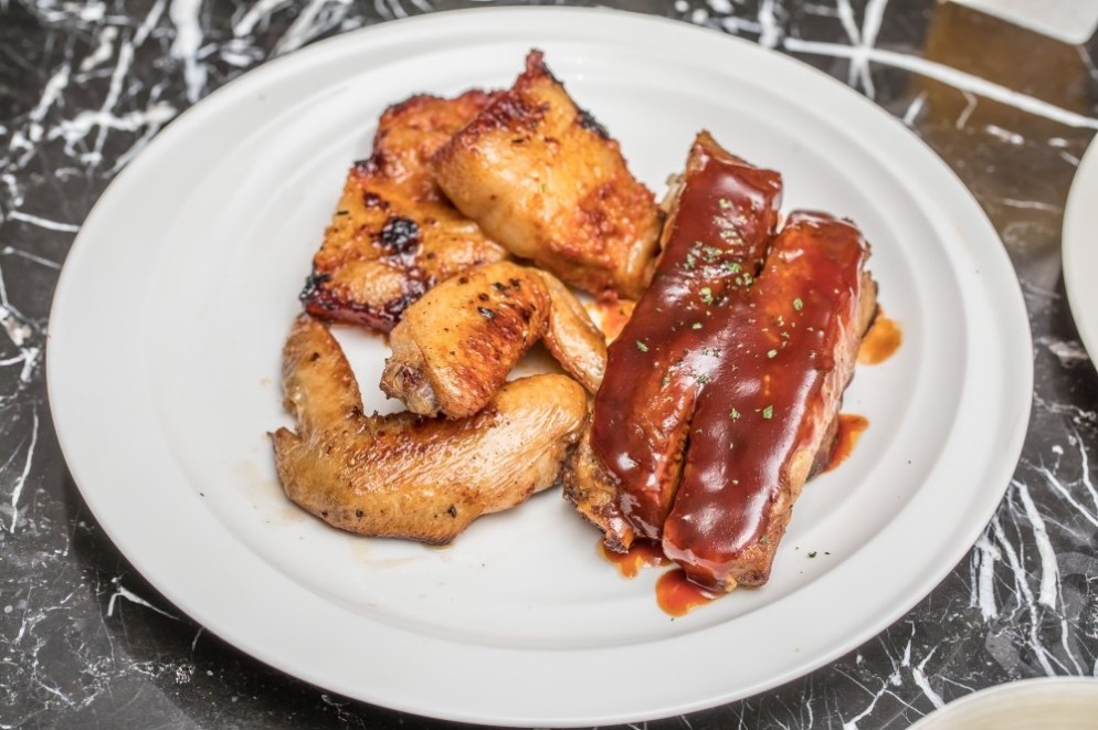 再來,口感噴香的豬肋排跟雞翅,還有超級逼人又軟嫩又甜鹹夠勁的韓式豬五花,真的是再多都吃不膩。(搭配生菜或是熱清湯,保證讓你吃到停不住)