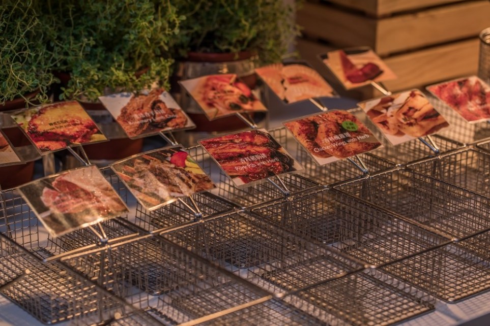 接下來,菜色通通都到齊了,熊就來跟大家分享一下到底這次的萬國燒烤Bar有什麼特色呢?基本上以菜色來說,大概有以下的這些選擇,包括以原味展現的濕式熟成45天肋眼牛排,還有口感軟嫩風味強烈的韓式風味豬五花,搭配台灣味醬料打造的醬醃帶骨牛小排與嫩口又香甜的豬肋排。
