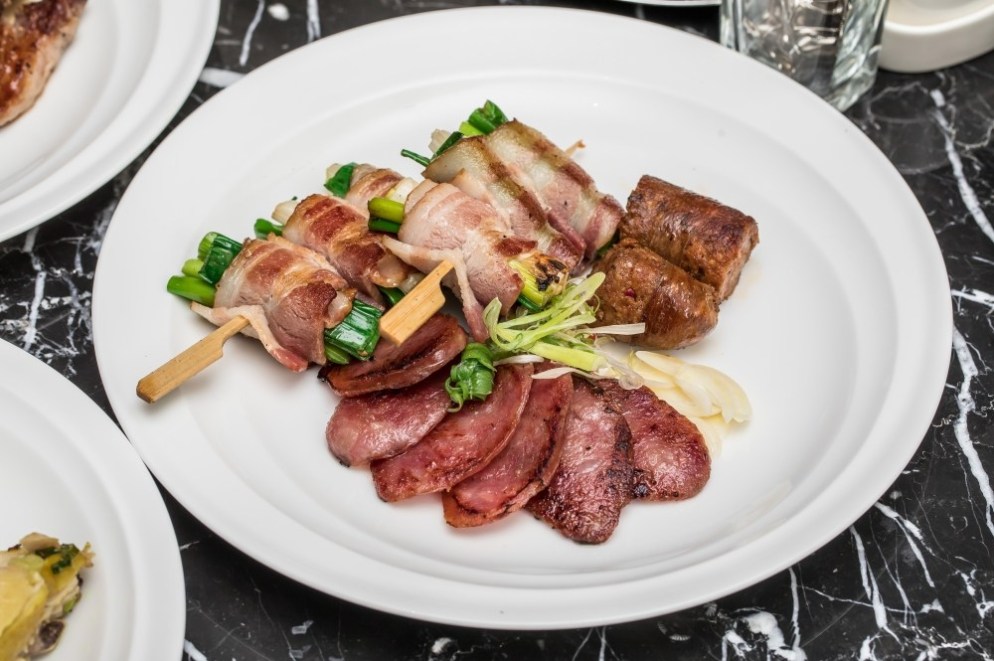 再來,還有非常傳統的在地小吃士林大香腸與台式醬醃雞翅,還有煙燻味十足口感多汁的培根三星蔥卷,搭配適合配啤酒的西班牙香腸Chorizo,加上鮮魚與帶殼扇貝跟大草蝦等海鮮及特選五款蔬菜,都是這次的燒烤菜色裡最重要的食材選擇。