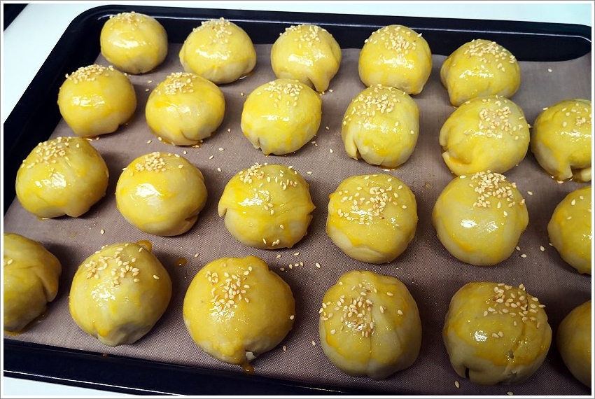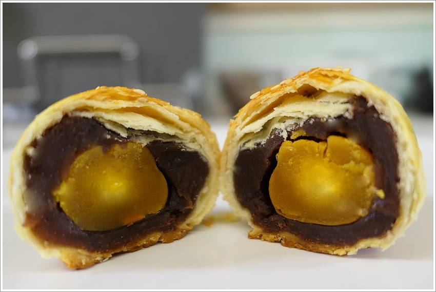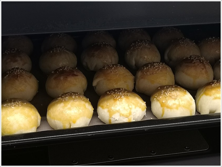 烤蛋黃+油皮油酥+豆沙餡時間壓在15分鐘