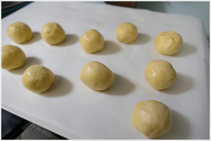 ▼分好每一等份後鬆弛15分鐘 (油皮每顆23g、油酥每顆15g)