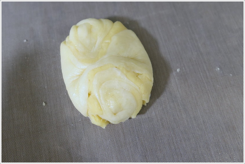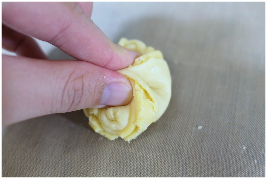 ▼麵糰要稍微壓大一些(可參考影片),最後包起來後再搓圓即可!