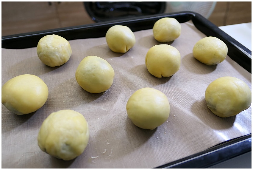▼等待麵團鬆弛期間可以先處理紅豆沙包蛋黃。