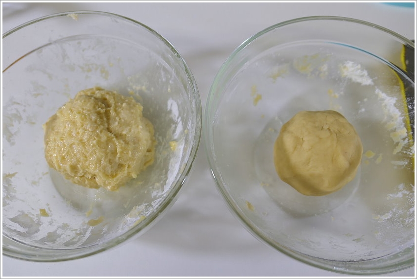 ▼在等待蛋黃烤熟期間,可以先製作油皮,將油皮所有材料混合後揉成麵團即可。