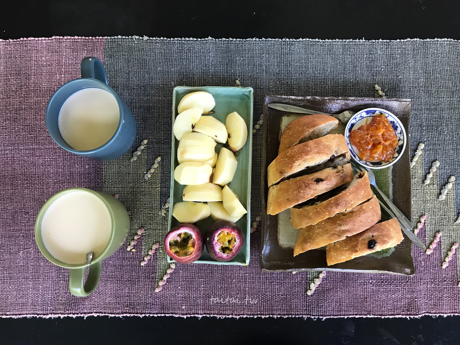 | 游先生做的早餐,我們買了牛奶回來自製拿鐵~ |