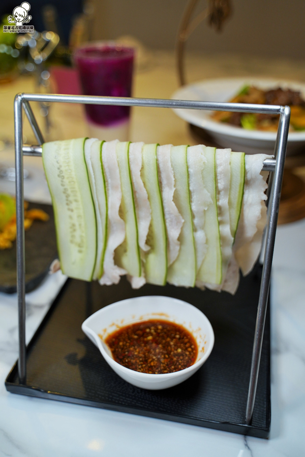 爽口帶有白肉的油花,搭配特製蒜泥醬汁提味