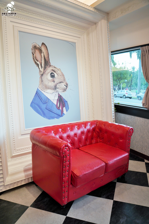 一進門就看到大紅沙發搭配超大幅的兔兔裝置畫框,快點拍照打卡唷~好美!