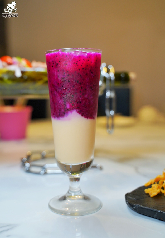 新鮮火龍果搭配養樂多,製作出的新鮮水果飲