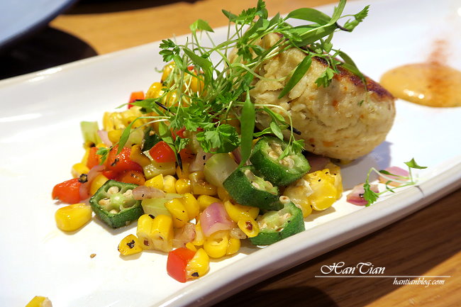 這道前菜非常清爽,煎餅可以吃到滿滿的蟹肉,搭配旁邊的玉米,整體口味很清甜,可以適自己的口味搭配旁邊的沾醬,沾醬略帶一點辣,可以讓口味變得更加豐富。