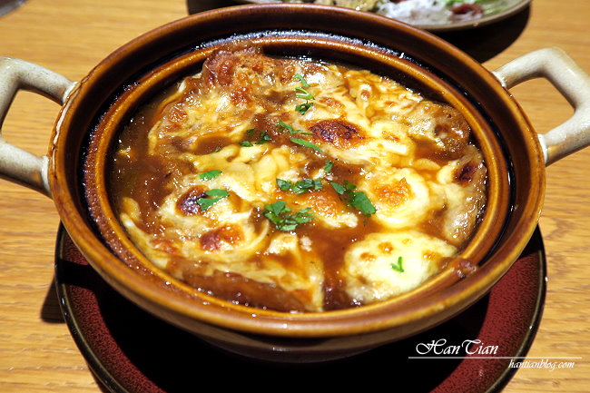洋蔥湯是服務人員推薦,果然非常的濃郁呀!顏色看起來很深,但實際喝起來卻香濃不鹹,再加上厚厚起士,香氣四溢,忍不住一口接一口。