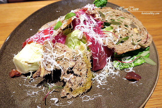 我喜歡Que原木燒烤餐廳這呈盤,能完整看到食物的原型,新鮮度十足的蘿蔓搭配脆薄的麵包,非常涮嘴開胃!