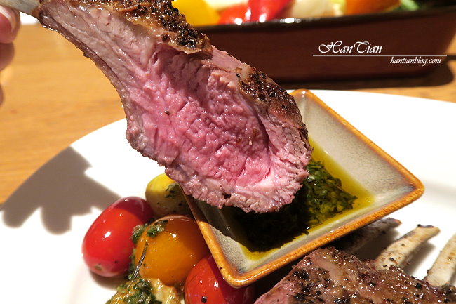 服務人員推薦我五分熟的熟度唉呀呀~~實在是太厲害啦~熟度很剛好呢~看起來粉紅,但卻不流血的熟度,而且Que原木燒烤餐廳選用的羔羊排好厲害!居然一點羊羶味都沒有!!!