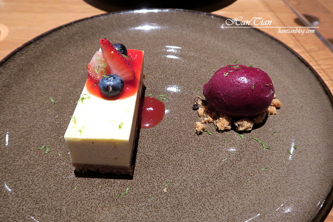 這道甜點很適合女生,酸酸甜甜的滋味,搭配重乳酪蛋糕,是很耐吃的一道甜點,即使酒足飯飽,大口吃肉之後,還是能輕鬆的吃完它。