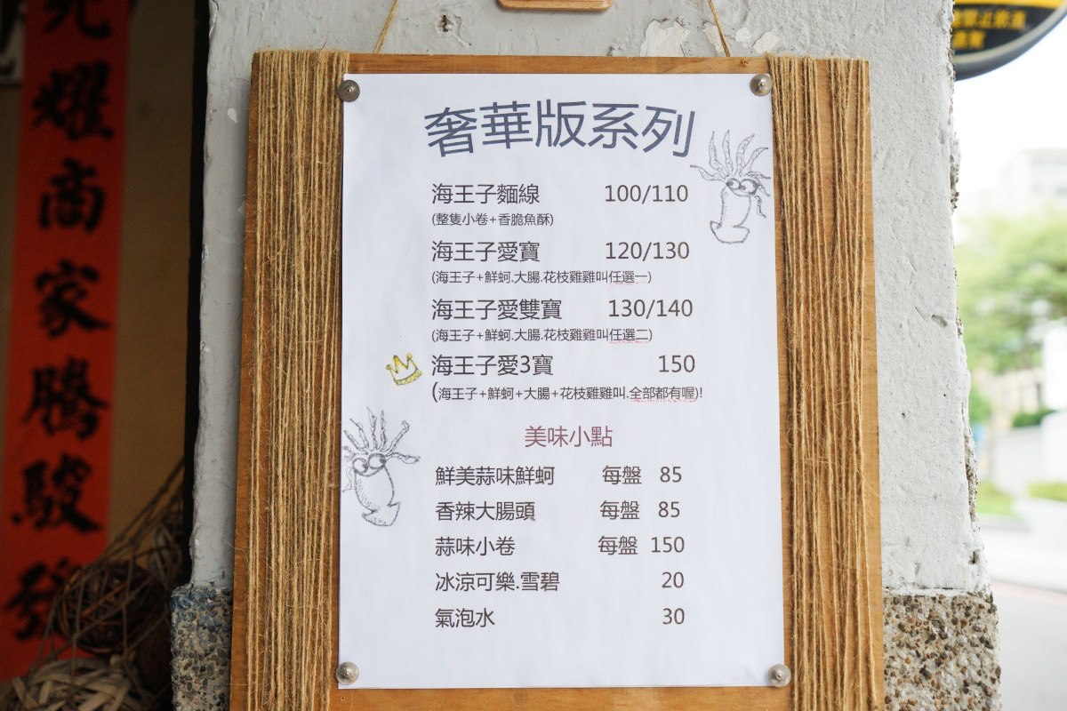 提供奢華版系列與經典版系列麵線,奢華版就是有滿滿的海鮮配料,招牌是海王子愛三寶,一碗 150 元,裡面全部的料都有。基本上許多人來都是衝著這一碗,老實說我也是第一次吃這麼貴的麵線,最好給我好吃喔,不然我真的會氣氣氣氣氣。