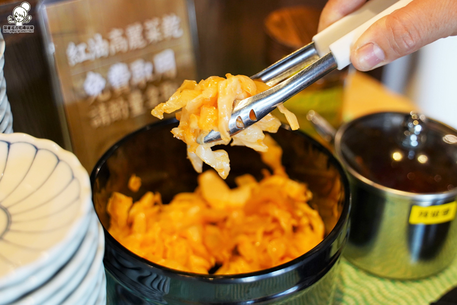 紅油高麗菜乾是店家特製,可單吃或者搭配麵食,清脆帶有紅油辣度很開胃,免費續加