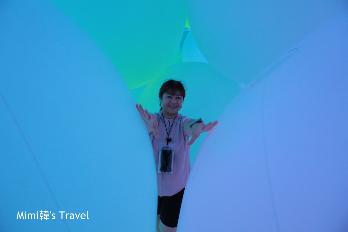 這個展出和teamLab Borderless感覺似乎有點重複,不管什麼角度都像走進一個水晶世界,好像在某些科幻電影中才會出現的景象。而且顏色燈光都會隨著音樂節奏去改變,超有虛幻的感覺。