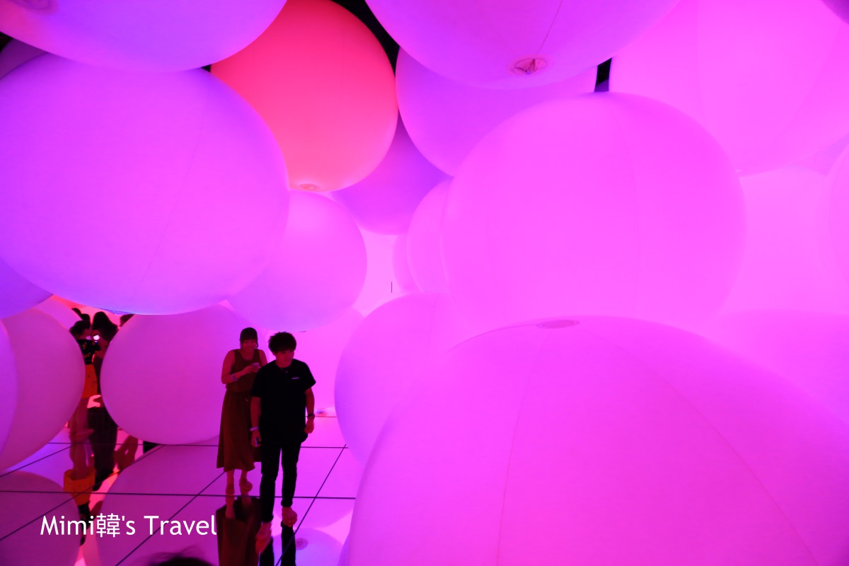這作品也是teamLab Planets裡大家照片最多的地方,一顆顆巨大的球體就像是有自我意識般漂浮在空中,大家也可以自由改變它們的位置。玩過球池嗎?歡迎來到巨人版球池~