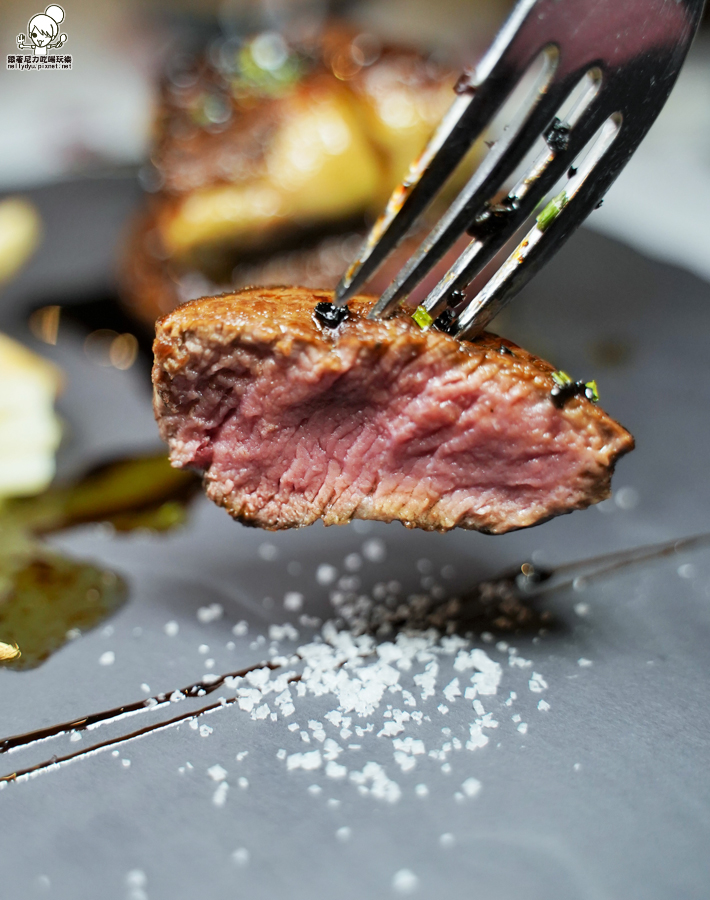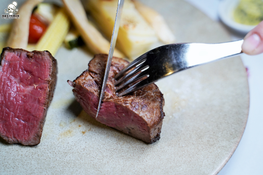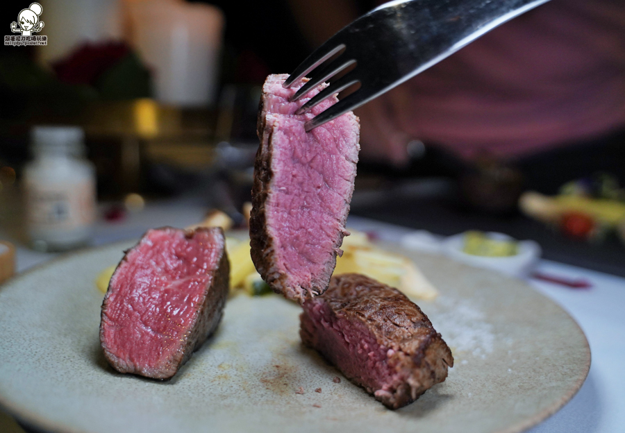 帶有肥厚的菲力牛排,推薦給不愛太多油花的饕客,三分熟度最好吃