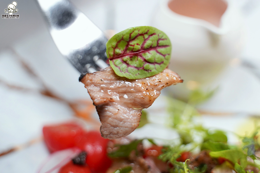 平埔黑豬梅花、菌菇、白起司、紅酒漬梅醋