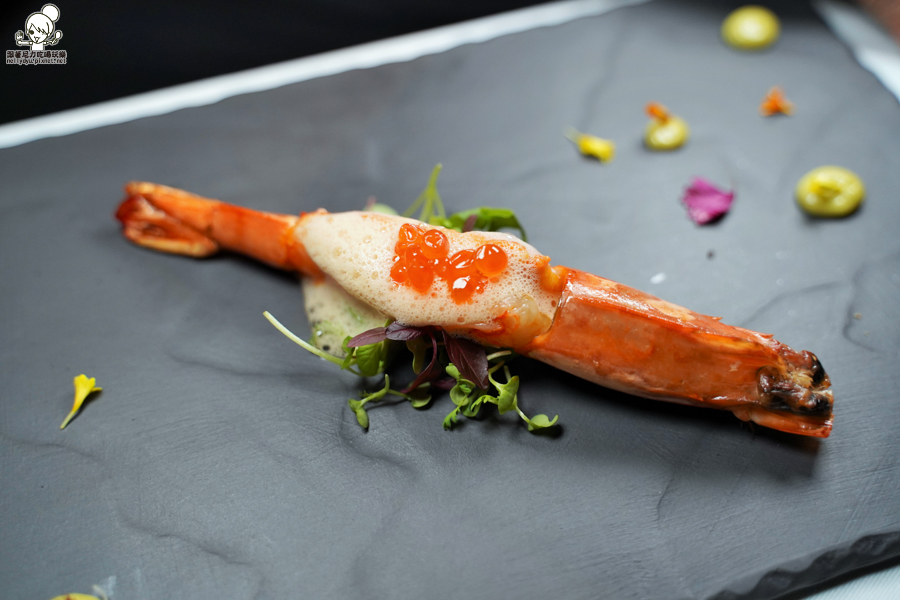 使用手掌大虎蝦,主廚特製龍蝦醬汁泡泡帶入提味