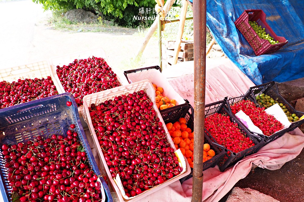 確定可以下車之後,整團的人嚇傻了店家,人手一公斤的櫻桃,你們都不怕解出來的大便會變紅色嗎?